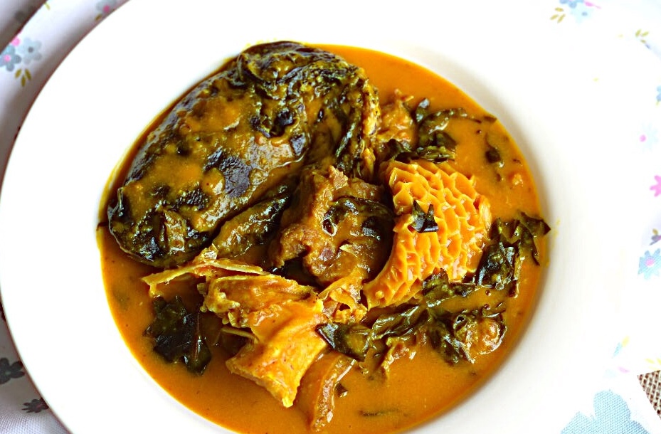 Rich Yoruba-style vegetable soup cooked with leafy greens, peppers, and spices, freshly prepared and full of depth.